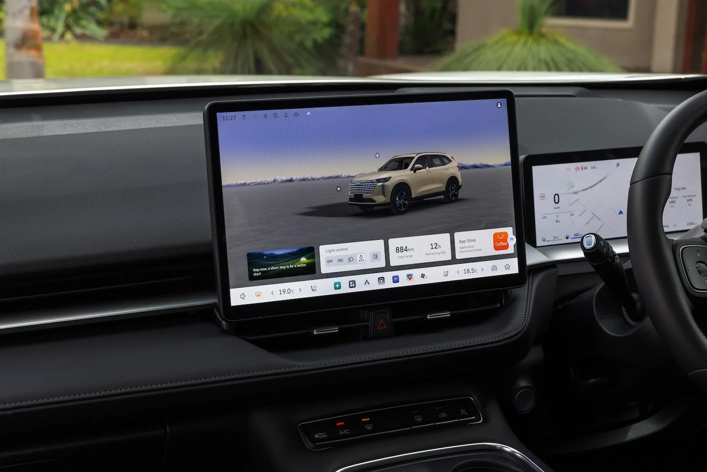 The Ultra hybrid and Ultra PHEV are identically outfitted in the cabin but the PHEV picks up the new ‘Coffee OS 3’ firmware with an interface similar to that used by Tesla and some other Chinese cars. There wasn’t time to use that. While the route was pre-sorted into sat nav, the organisers decided to use a third party guidance unit rather than the car’s.