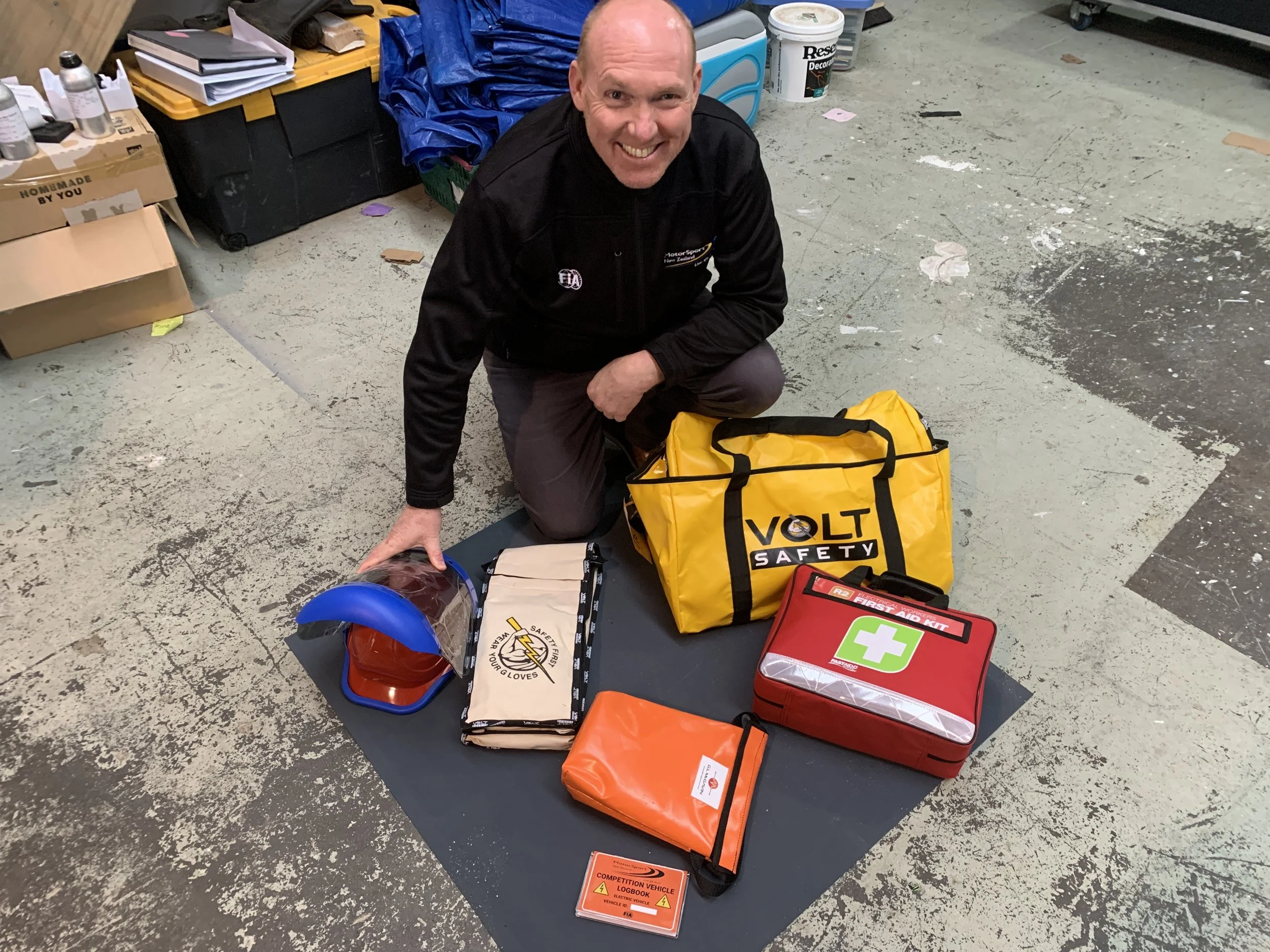 The packs including a helmet, heavy-duty gloves, a defibrillator, high voltage isolation poles and rescue hooks – designed to pull people away from cars if they've been temporarily paralysed by an electric shock – will be loaned to clubs whenever they accept electric vehicles in their events.