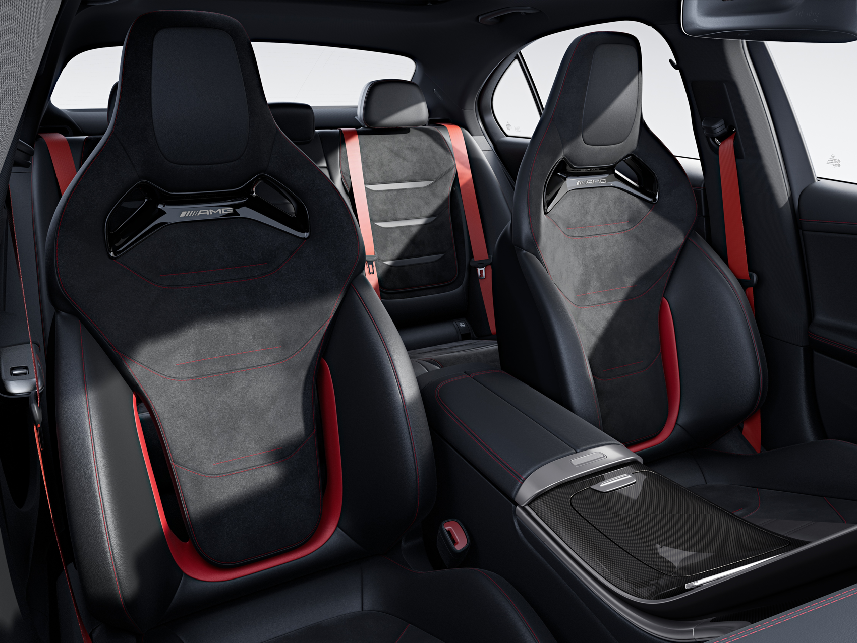 The Edition R also uptakes AMG sport seats upholstered in combination Microcut and Artico material with contrasting red inserts and stitchwork, red seatbelts, metallic dashboard garnishing, and a leather and Microcut combination steering wheel.
