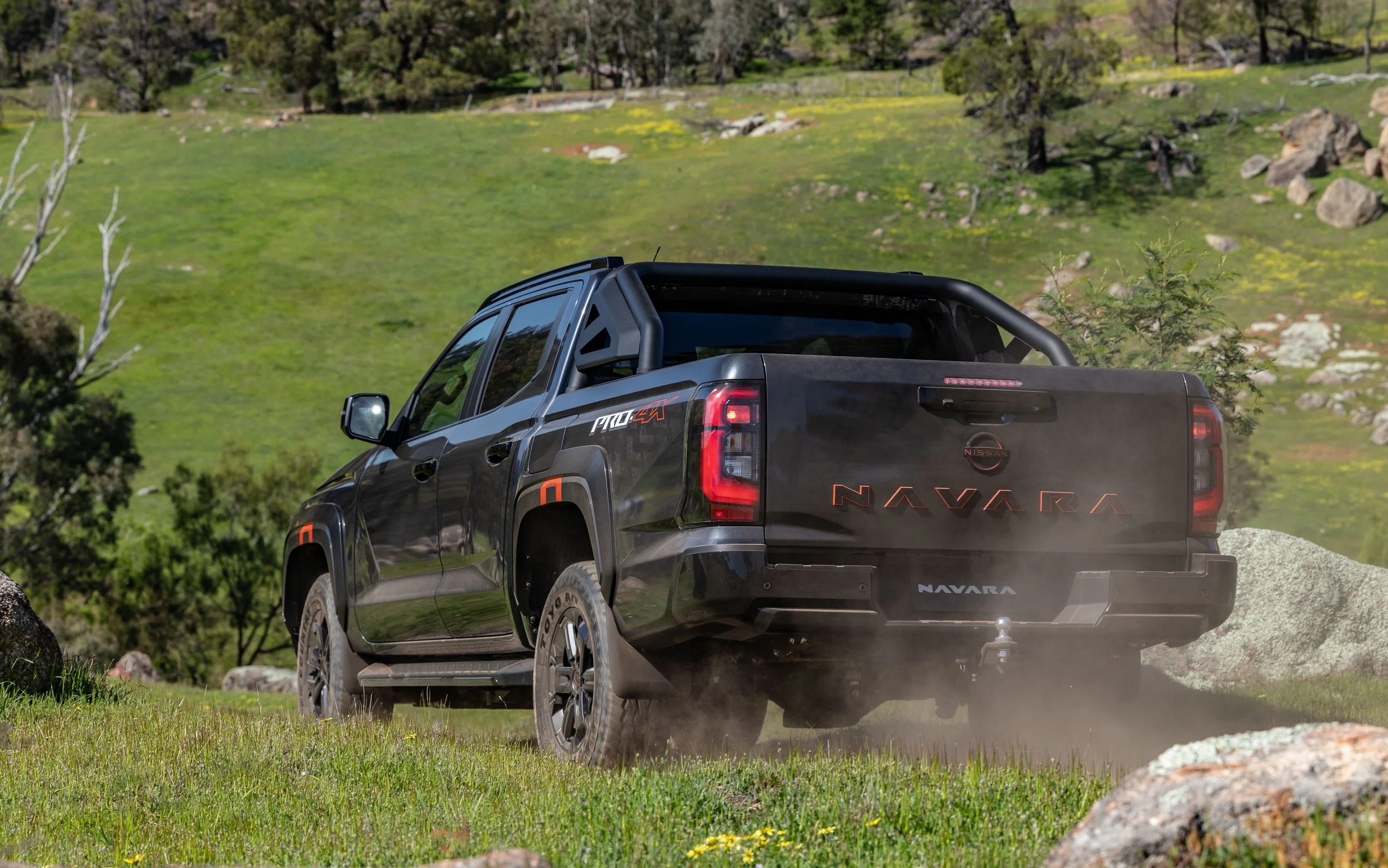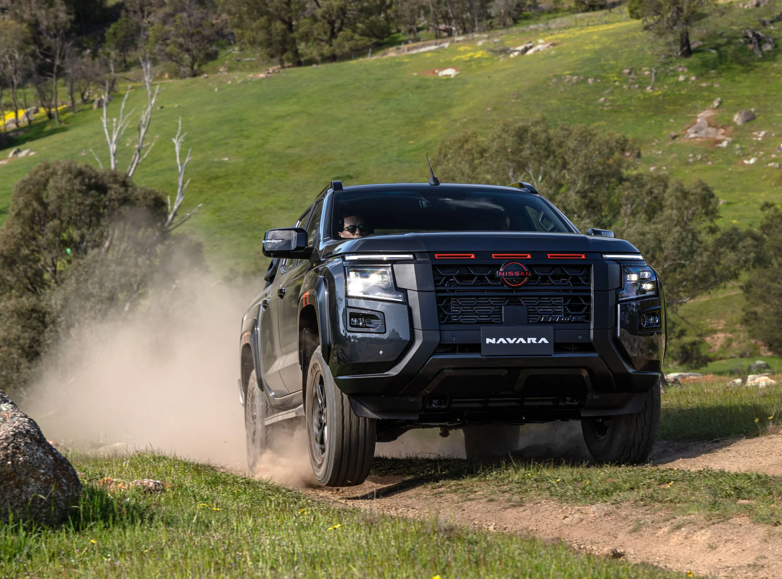 PRO-4X runs unique matt black 17-inch alloy wheels, has arch mouldings with lava red accents, and a red-accented Navara tailgate badge. It also sports PRO-4X embossed seats, and lava red accents throughout the cabin.
