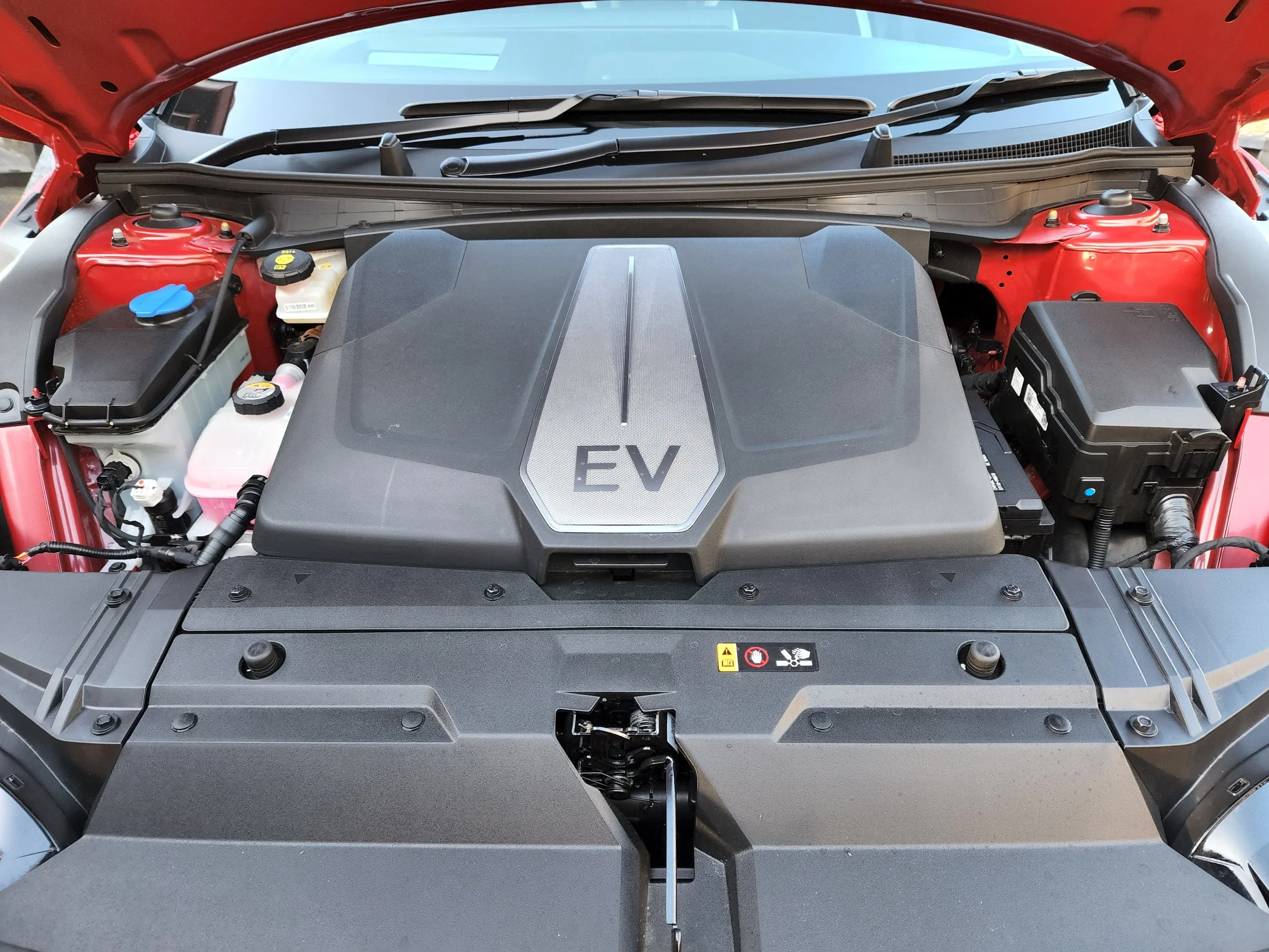 The EV is quite a large vehicle with a substantially long (2900mm) wheelbase, so there’s good room inside. The boot is spacious too, offering 480 litres with all seats in use, growing to 1300 litres when the back seats are folded down. Not only that, but up front there’s what the EV manufacturers call a frunk, which offers 20 litres of load space under the big fold-down cover.