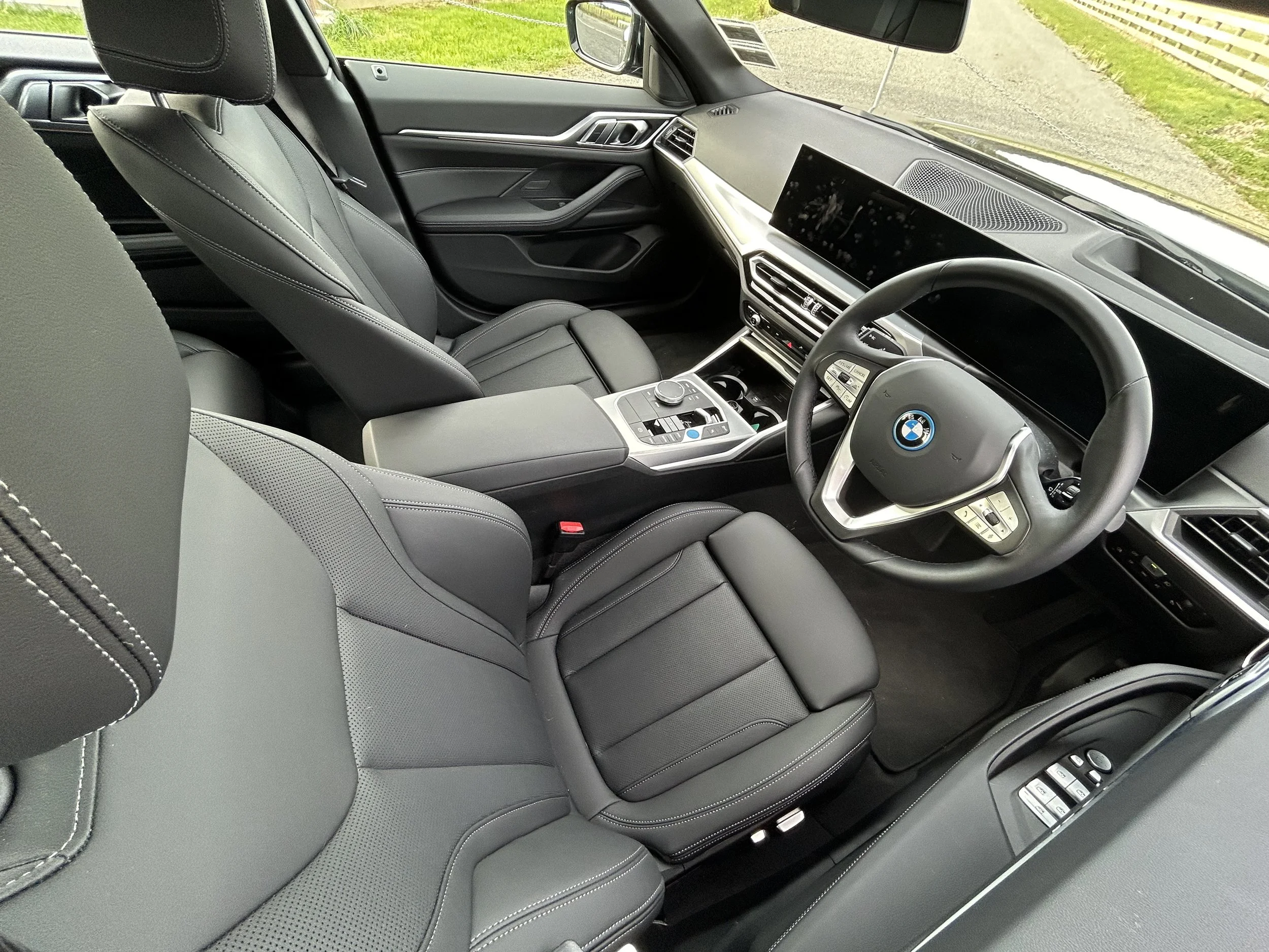 A surprise turn-up was the tyre size and choice; not only is it on meaty 18-inch 255/45 rubber, but they’re not exactly from the bargain bin, being Pirelli P-Zeros. The alloy rim is a nice design too; much more preferable in my eyes to the iX1’s awful aero-finished type. These things remind that, even when trimmed to a lower spending level, the i4 remains a premium product.