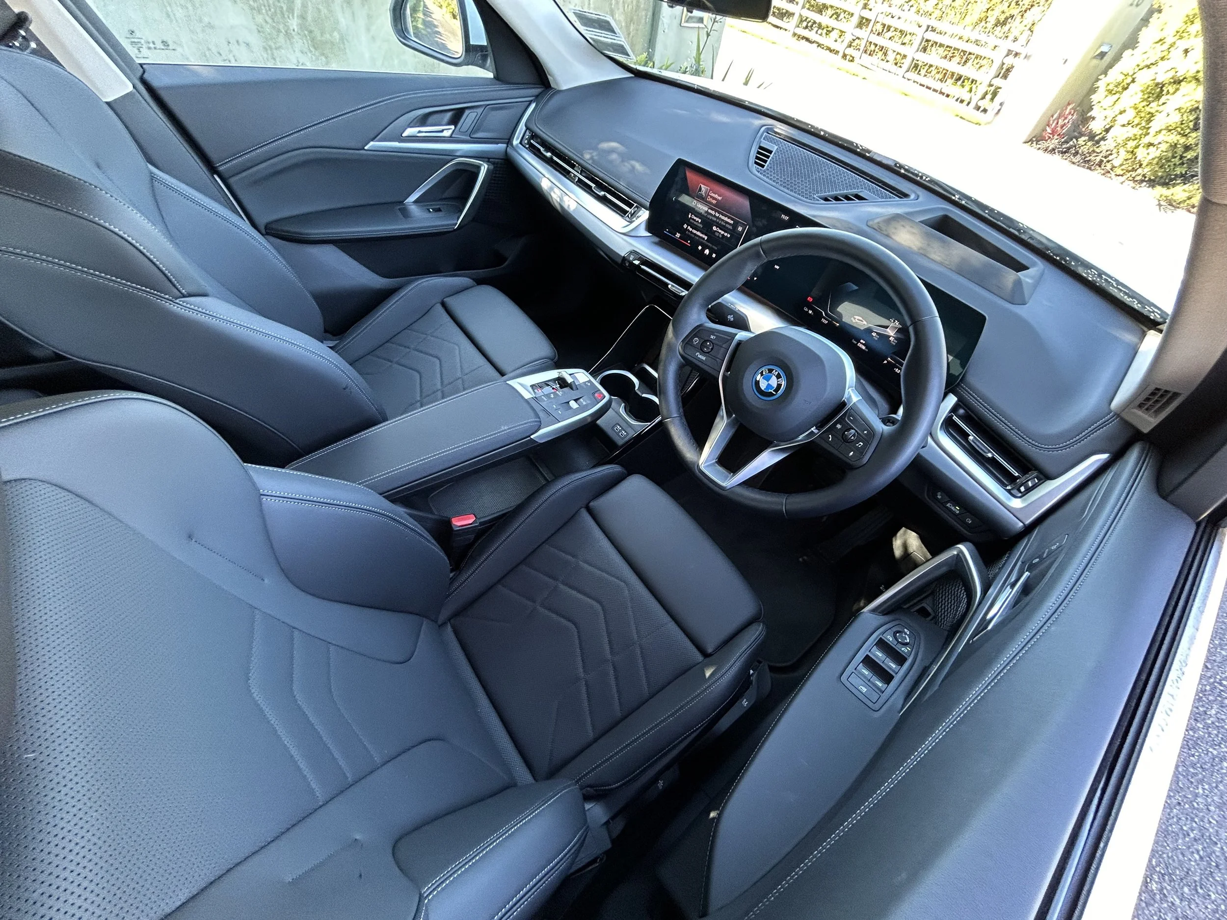 Those wanting more will need to pay more for the iX3, which ostensibly isn’t that much larger in every respect, but has a 202mm longer wheelbase; a difference you’ll mainly notice in the back; though mainly in respect to better lower leg space for rear seat occupants as going bigger brings just 20 litres more luggage capacity. Calling the iX1 a five seater isn’t a stretch, as the almost completely flat ‘transmission’ hump means the middle person isn’t as compromised for foot space as would be the case in a like-sized rear-drive petrol model.