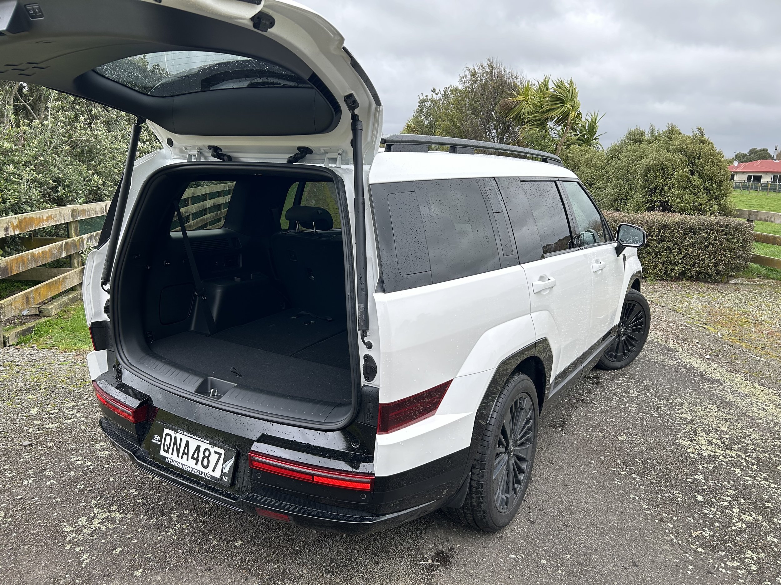 Here it’s more likely they will take it forward. The second-row is also spacious, with legroom up by 35mm. While the third-row remains more suitable for children than adults, they also benefit from legroom having increased by 15mm to 761mm. The US-made Palisade is slightly more spacious, but only just: And the Santa Fe now beats it for headroom.