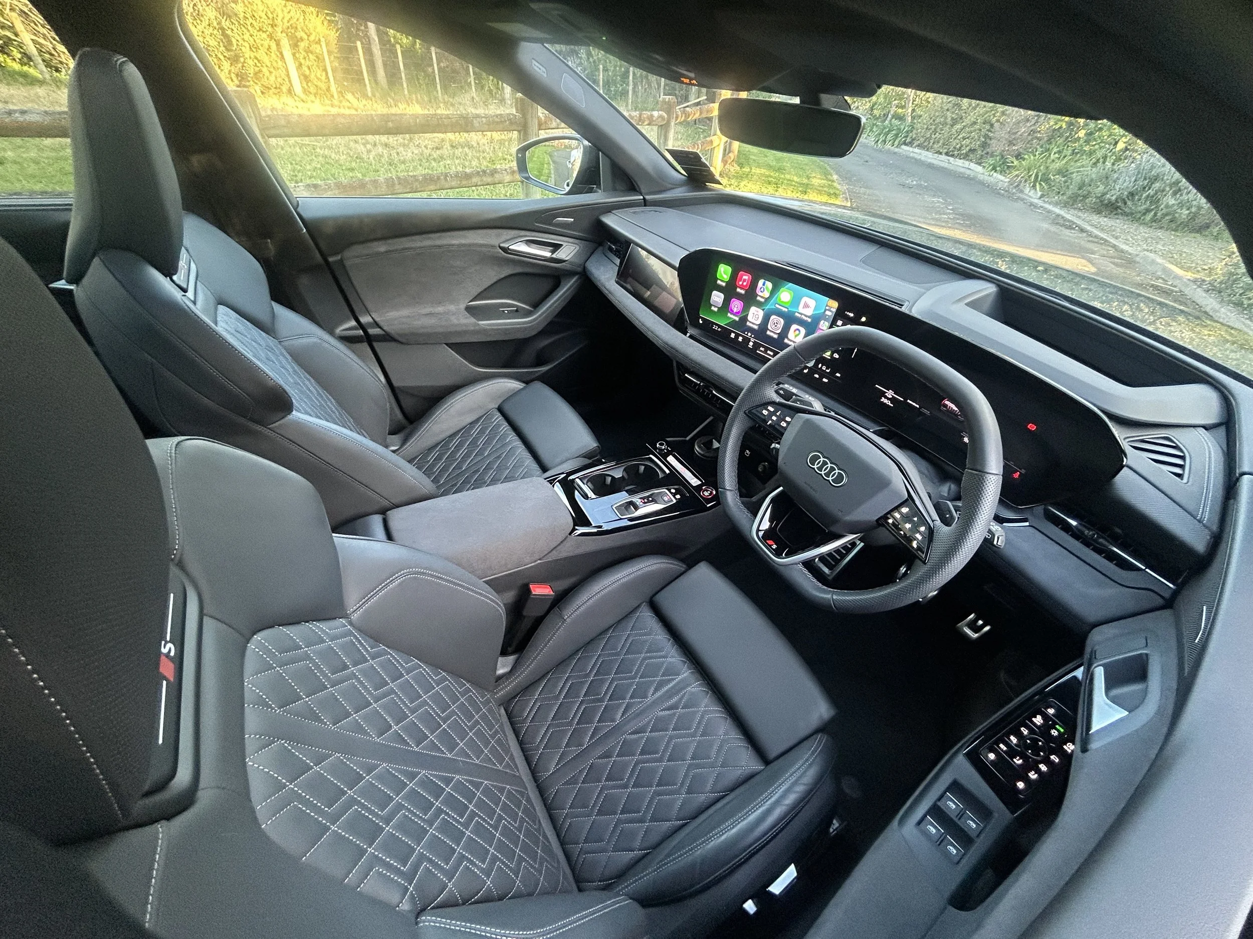 Charging downtime is good opportunity to enjoy the car’s cabin. Audi interiors at this price point tend to to be rather nice, but the Q6 focuses on providing the premium trappings buyers expect to see is particularly good.