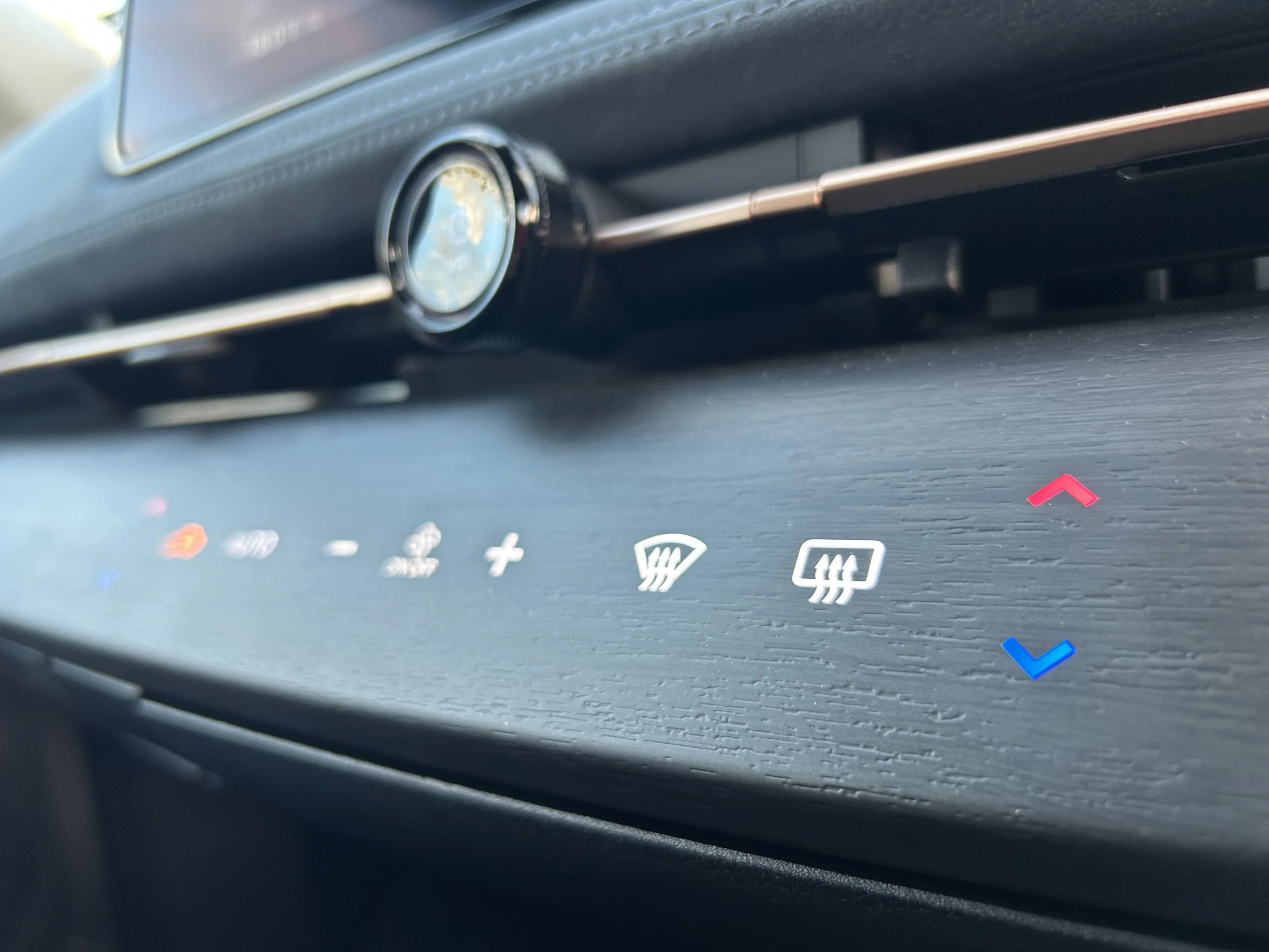 The delivery of hidden-until-lit capacitive ventilation controls along that wood strip is a show car element that might raise criticism, but in actual use they work fine, though the capacitive buttons do require a firm push.