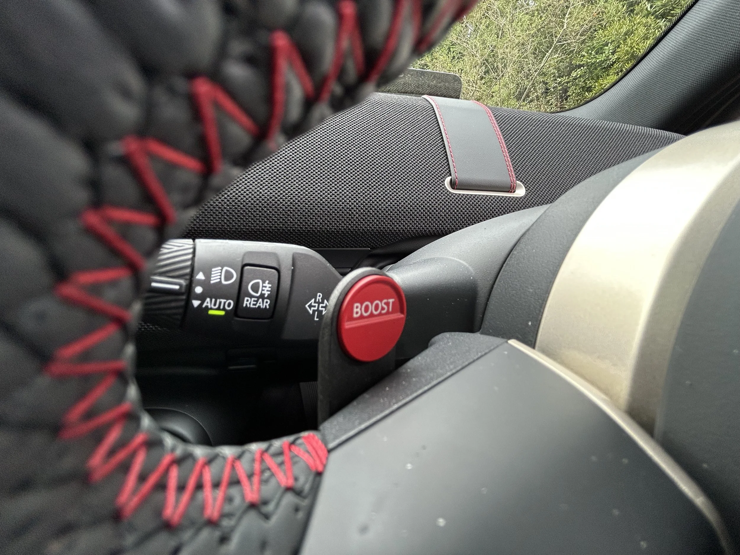 The powertrain always feels responsive regardless of drive setting, but optimal on-the move power requires trying out something new for JCW. Boost function is a fun little red-coloured paddle on the left hand side of the steering wheel, active only when you’re in John Cooper Works mode. It unleashes an additional 20kW and 10Nm for 10 seconds (there’s a countdown clock). The car’s absolutely full grunt of 200kW and 356Nm is reserved for eLaunch mode. Poor tyres.