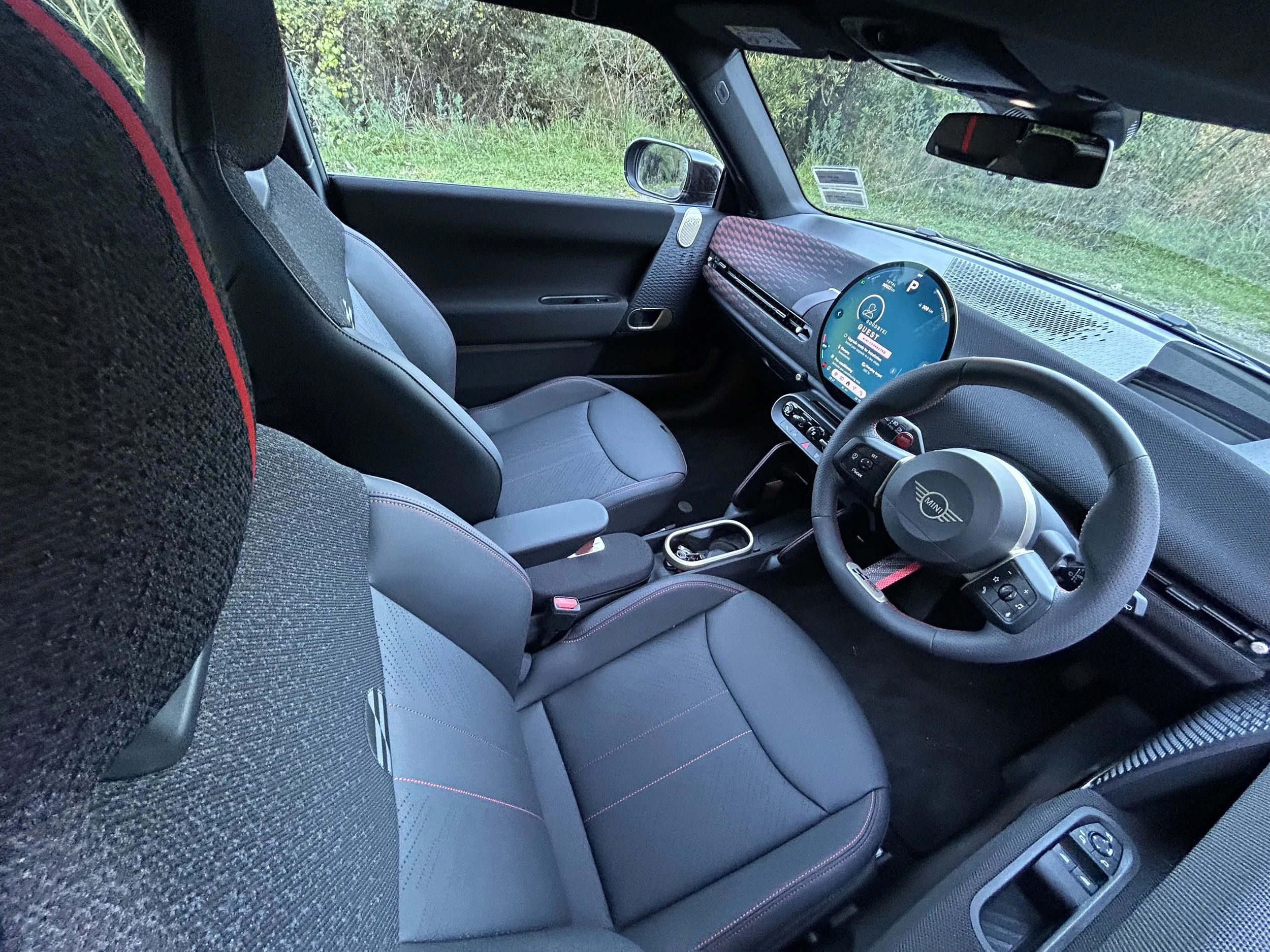 But if supercilious, it is very stylish and generally cleverly done. The 24cm (think dinner plate-sized) circular infotainment screen has long been a MINI thing. As a high-quality OLEOD that is bright and clear it is also very much a portal for nearly everything, including the heating controls, closely related to BMW’s iDrive and yet going its own way for operability and look.