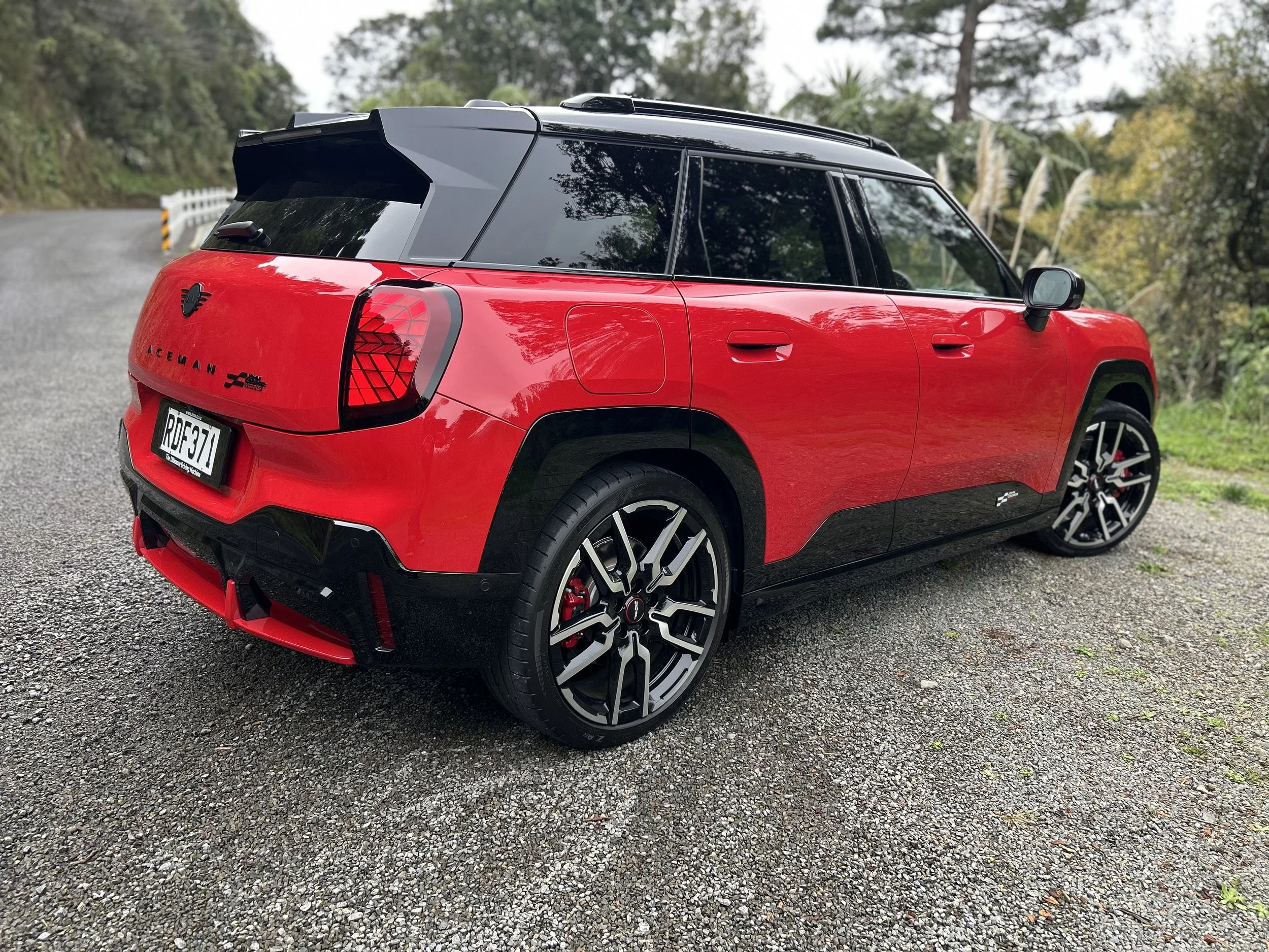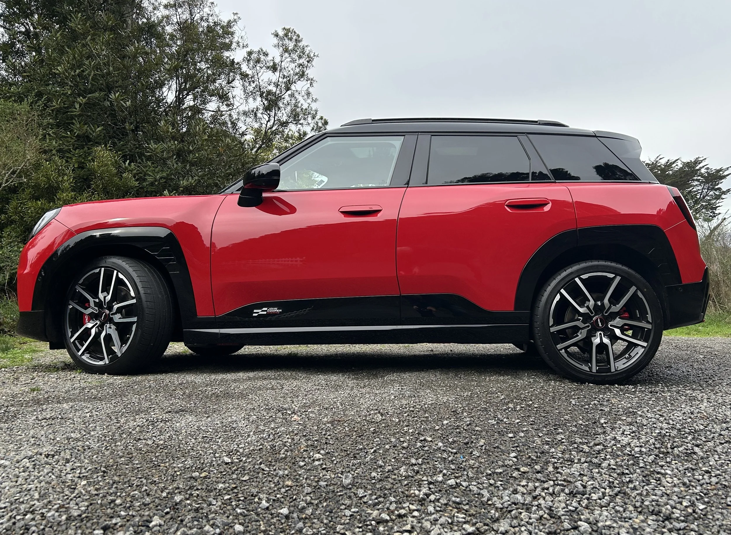 The red, white and black JCW logo places on this, the front bumper and rear hatch badging strip. Plus there are bespoke body colours - Chili Red II was stunning on the Aceman - teamed with a contrast roof.