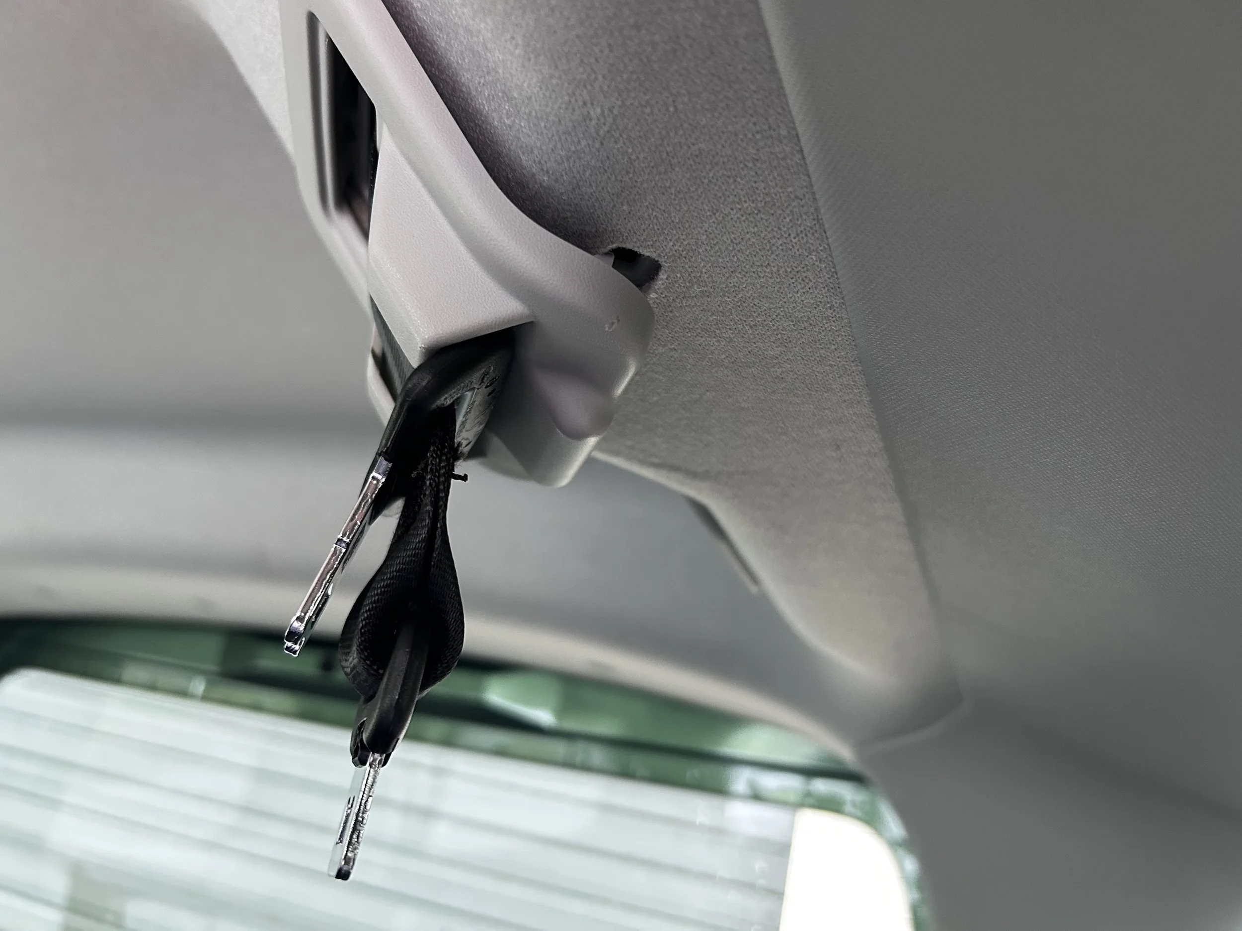 A point of interest about the back seat is that it only comes with two ISOFIX child seat mounting points, one on each of the outer rear seats, probably because it’s unlikely a third child seat will fit in the middle of the other two in the back. The seatbelt for the mid-section seat spools out from the roof on the left hand side; someone in the past had perhaps been a bit rough with it as the cover for the retractor was broken.